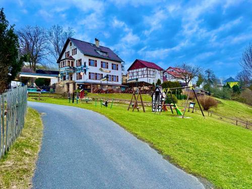 Resort Mezná features a restaurant, bar, a garden and terrace in Hřensko. Featuring room service, this property also provides guests with a children's playground. Free private parking is available. At the guest house, rooms include a wardrobe. Resort Mezná offers certain units that feature a balcony and garden view, and every room has a private bathroom and a desk. At the accommodations each room has bed linen and towels. A continental breakfast is available every morning at Resort Mezná. Guests at the guest house will be able to enjoy activities in and around Hřensko, like cycling. Bad Schandau is 11 mi from Resort Mezná, while Pirna is 22 mi away. Resort Mezná is located in National park České Švýcarsko, 2.5 mi from Hřenska and offers restaurant with terrace
