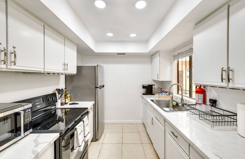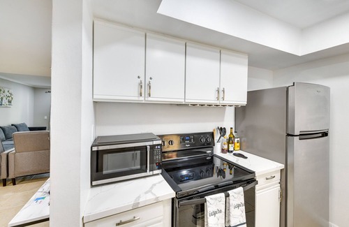 Discover the epitome of relaxation at this lovely 2-bedroom, 2-bathroom vacation rental in Palm Springs. With spacious rooms and must-have amenities, this condo is perfect for couples or friends looking to indulge in desert luxury! Take advantage of the prime location near the Palm Springs Aerial Tramway and the Coachella Valley Preserve. Then, after a day of adventure, unwind by the community pools or soothe your muscles in the hot tubs. Top off the evening with a glass of vino on the patio!