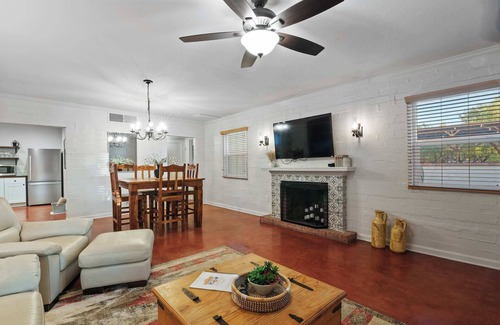 Welcome to Solana Spanish Villas, Villa #4 a cozy retreat perfect for couples and small families. Enjoy a private backyard with a BBQ grill, ideal for gathering and outdoor dining. Inside, you'll find a spacious living room and a fully equipped kitchen to make you feel at home. The resort-style amenities include a heated pool and pickleball court. Experience comfort and relaxation in this charming Tucson getaway!