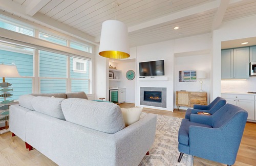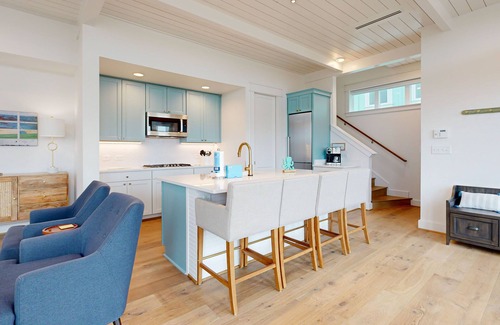 Our 2 bedrooms, 2.5 bath retreat is more than just a stay—it's an immersive seaside experience. From the views on private decks to the luxury of well-lit, open concept living spaces, every detail is curated for your maximum comfort and delight. The well-equipped kitchen beckons the family chef with stainless appliances, a propane cooktop, and a wine fridge for toasting to those special moments. Extra touches transform meal preparation into an act of joy rather than a chore. Leisurely ascend to the upstairs bedrooms, where tranquility takes center stage. The master suite hosts a haven of peace, offering a private deck for intimate reflections or a romantic sundown spectacle.