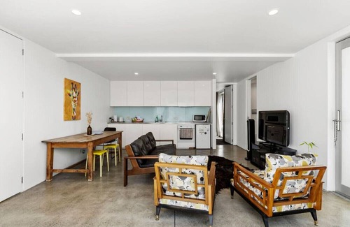 The secure one bedroom apartment is accessed via the internal garage (or via a separate entrance from the street) and is included within the rental.