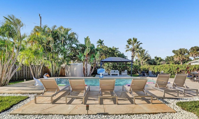 Welcome to this Amazing 6 bedroom and 4 bathroom Home with Massive Back Yard an Resort Style Heated Room - Huge Living Room and Dining Room space with all brand new furniture. Be the first to stay vacation in this incredible home with full pool table and game room, space for the entire family. Tempurpedic mattresses and beautiful linen. House is fully stocked with all cook ware and needs for your holiday meal. Huge backyard to run around and play with covered Cabana. Fire Pit Area for fun and night and smores, Bong with the family with a Game of Beach Volley Ball, 6 Lounge chairs and many other outdoor seating options for sunbathing, Table and Chairs For Dinner outside and Huge Backyard for Family Sports or to run around and Playground for the Kids Just 2 miles to the new Pompano Beach Pier and 2 miles to world famous Deerfield Beach in between Boca and Fort Lauderdale Lighthouse point is a beautiful coastal neighborhood.