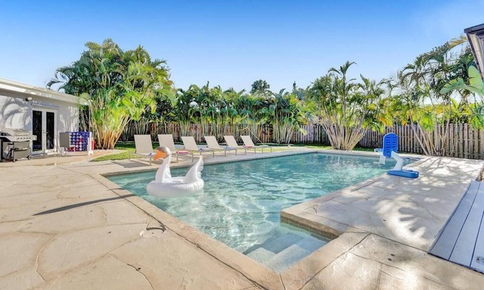 Welcome to this Amazing 6 bedroom and 4-bathroom Home with Massive Back Yard and Oversized Resort Style Heated Room Just 2 Miles to New Pompano Beach Pier and World-Famous Deerfield Beach - Huge Living Room and Dining Room space with all brand-new furniture. Outdoor Table and furniture, Fireplace sitting area, pool table and game room, BBQ Grill, Beach Volleyball New Playground for the Kids, Outdoor Shower. House is fully stocked with all cook ware and needs for your holiday meal.