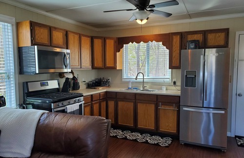 When you enter the Relaxation Station you will find a light and airy open floor plan. The home is about 1000 sq ft with the living room, dining room, kitchen, and bathroom/laundry room located on the first floor. Everything is freshly painted and new flooring has been installed. All the appliances are new and the kitchen should have everything you would need to feel at home. We do have a coffee bar that is stocked with a few limited flavored K-cups or you are welcome to bring your own.
