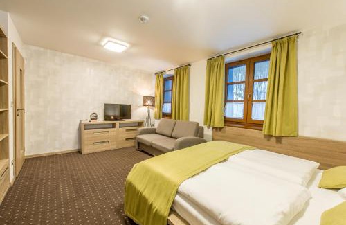 Restaurace a Penzion Bludoveček is offering accommodations in Bludov. With free private parking, the property is 8.7 miles from Museum of Paper Velké Losiny and 21 miles from Bouzov Castle. The accommodation provides free Wifi throughout the property, as well as a terrace and a family-friendly restaurant. The guest house offers certain units with mountain views, and every unit includes a private bathroom. In some units there's a dressing room for guests to change in. Guests at the guest house will be able to enjoy activities in and around Bludov, like hiking. A children's playground is also available at Restaurace a Penzion Bludoveček, while guests can also relax in the garden. Pardubice Airport is 67 miles away.