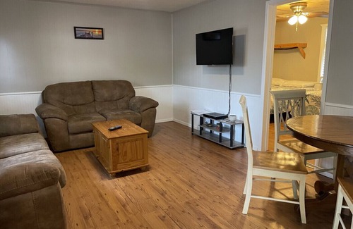 Welcome to our inviting 2-bedroom cabin, a perfect retreat for your stay. Whether you're here for relaxation or outdoor adventures, this cabin has everything you need.