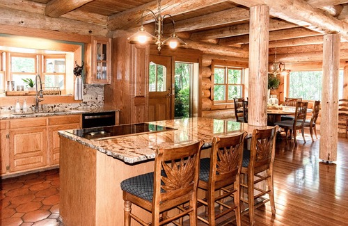 Travel + Leisure magazine featured Restful Lodge as one of "7 Stunning Homes Near National Parks You Can Book on VRBO." The beautiful spruce log home is situated on 15 wooded acres on Lake Hamilton. The property includes a private 28-foot covered boat dock, kayaks, and a private 9-hole disc golf course designed by Premier Master Designer John Houck.