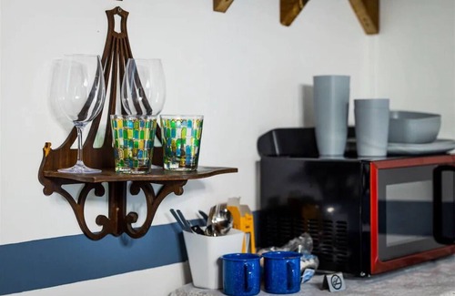 You will find eye candy in every nook & cranny of this tiny home! Enjoy the treasures that make up this space, from old photos to vintage cans & vases. We have even converted the TV that was original to this site to enable it with Smart TV capabilities! Yes, it really works like a modern-day TV!