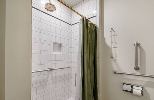 Composed of all nine suites on a single level, each room presents a stylish and sophisticated space with sage green walls, a unique design, and thoughtful touches. Each room provides a convenient kitchenette with a microwave, mini-fridge, sink, and coffee maker. Two of the suites feature a living area with a queen sofa bed, one has a queen sofa bed, and a handful of the suites offer a desk setup. The hotel has four full bathrooms, all accessed via the hallways. It does not get much better than this dreamy boutique hotel within walking distance of the beautiful Liberty Bay!