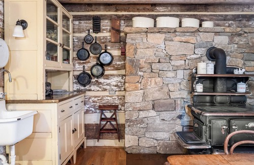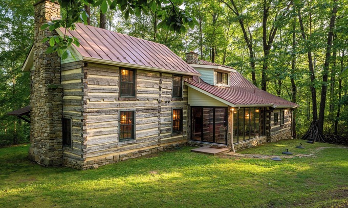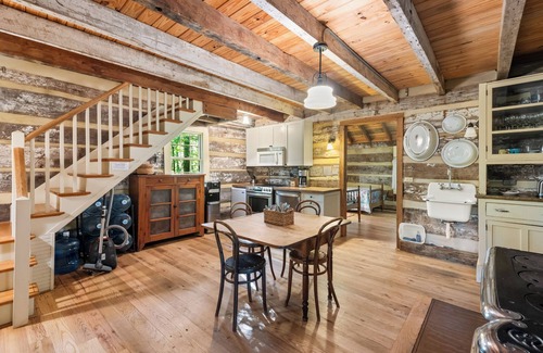Immerse yourself in the ambiance of yesteryear on 400 mountainside forested acres. Hand hewn chestnut logs, reclaimed wood floors, restored antique stoves, furniture, and claw-foot tubs, - all contribute to the historic atmosphere, while folding glass walls, spacious rooms, central heating and air conditioning, and modern appliances provide the comfort and ease of modern day life.