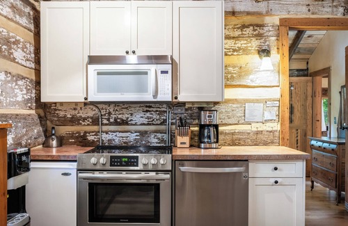 The kitchen has modern appliances; electric range/oven, microwave, two standard drip coffee makers, an antique electric refrigerator, a freezer (plus an antique wood cook stove for the adventurous sort - though best used for ambiance on a cool morning while bonding over your morning coffee). The kitchen is arranged as the early kitchens were, with the table in the middle of the room.