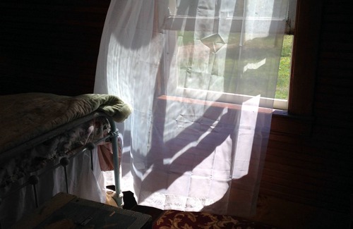 Upstairs are two bedrooms each with a double bed, wide pine floors, and country décor. And at last --- after 100 years of our relatives using an outside “privy” back when this was just a summer “camp”, we have a bathroom -- clawfoot tub with shower hoop and beautiful vessel sink on original ladies wash vanity. Towels and soaps provided. The bathroom window offers the best view of the mountains.