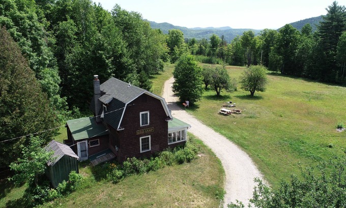 Lovingly restored historic Adirondack Bird Camp is surrounded by wildflower meadows with beautiful mountain views. Located on family compound of glamping tents and unique cabins. Wildflower meadows to wander, a private firepit for star gazing and just down the road from beautiful 13th Lake.