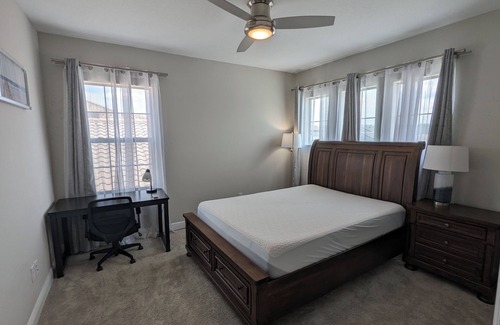 Forgot your worries in this spacious and beautiful house with 3 bedrooms and 2 bathrooms. Rooms are located upstairs. A brand new home in a quiet and gated community and centrally located, offering you a quiet, peaceful and safe place to rest and recharge. Fully furnished rooms with a queen sized bed. Washer and dryer on-premise available for use