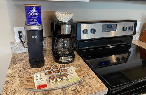 Your stay includes a starter supply of toilet paper, paper towels, laundry detergent, coffee, tea, foil + plastic wrap, and more. The kitchen comes fully loaded with all appliances such as a microwave, fridge, stove/oven, and dishwasher along with tons of kitchenware (various plates, silverware, glasses, mugs, pots, pans, knives, 3 types of coffee makers, blender, toaster, Crock Pot, and more).