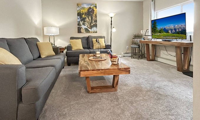 Experience comfort and style in our 2-bedroom condo with a full bath, well-equipped kitchen, and a cozy living room boasting a 55" Smart TV. Perfect for families, a Pack N Play is provided. Enjoy convenience with free parking, central location, and nearby hiking trails. Benefit from private access, eliminating public hallways. Revel in in-unit amenities: washer/dryer, WiFi, YouTubeTV, and a dining room. Unwind on the shared patio with two 2 BBQs. Your centrally located haven awaits!