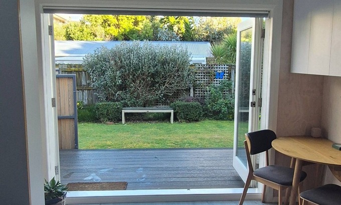 This peaceful, self-contained studio in Raumati South is designed for couples seeking space to rest, reconnect, and enjoy each other’s company in a slower, more spacious way. Set at the rear of a quiet garden property, the space is simple, serene, and ideal for a quiet weekend or midweek pause.
