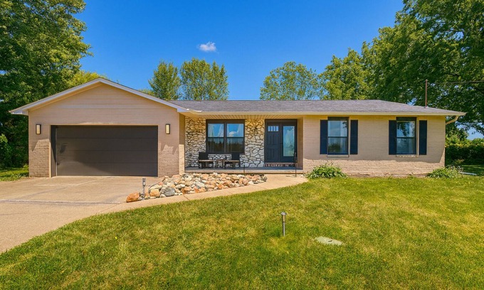 Welcome to your newly remodeled Frankenmuth getaway on Warnick Road! Nestled on 5 private acres yet only 1 mile from downtown, this spacious ranch-style home offers the perfect blend of privacy and convenience. You can even see Zehnder’s Splash Village from the driveway and hear the charming Bavarian Belle boat whistle in the distance.