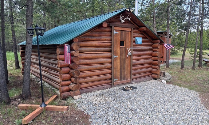 Escape to our small charming cabin, situated in a secluded retreat with a queen-sized bed and hideabed. Explore walking trails, lakes, and fishing spots in the vicinity. Take a scenic drive to Glacier Park, just an hour away, or set up a tent outside the cabin and enjoy quality time with family around the fire pit. Glistening solar string lights illuminate the night, accompanied by an outdoor shower and wash basin for refreshing morning and evening routines.