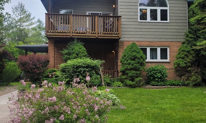 This spacious three bedroom (sleeps 10), two bathroom, newly furnished and decorated two-story cottage is tucked away in a large picturesque wooden lot that offers privacy, quiet, and endless spaces to relax and enjoy nature, just a short ten minute stroll from the beach!
