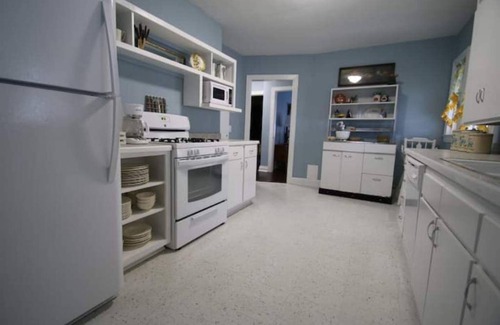 Completely remodeled 1940s Post-war home that has been decorated to fit the time period. Of course, you will have access to modern conveniences