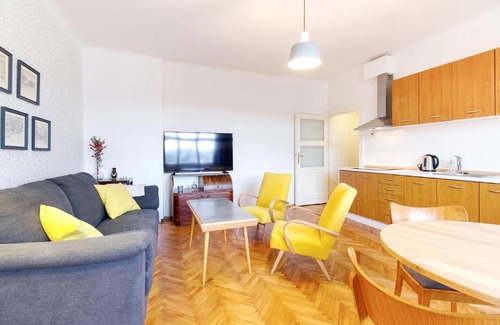 Set in Brno and only 2.4 km from Špilberk Castle, Retro Apartment with a View offers accommodation with city views, free WiFi and free private parking. This apartment is 3.6 km from St. Peter and Paul Cathedral and 3.9 km from Brno Main Station. The 1-bedroom apartment has a living room with a flat-screen TV with cable channels, a fully equipped kitchen with a fridge and dishwasher, and 1 bathroom with shower. Towels and bed linen are offered in the apartment. Trade Fairs Brno is 4.3 km from the apartment, while Villa Tugendhat is 3.5 km from the property. The nearest airport is Brno–Turany Airport, 12 km from Retro Apartment with a View.
