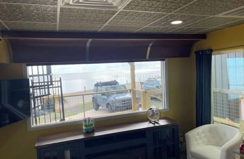 Authentic Starlight Diner Converted to a Bayside Bungalow on Galveston Bay! This Charming and Unique Waterfront Property has Panoramic views of Galveston Bay from Kemah to Red Fish Island. The deck has comfy sectional/chairs, gas firepit, Weber gas and charcoal grill. Two Bathrooms and a Huge Master Shower, Two Bedrooms with darkening curtains. The Yard with Heated Pool/Hot Tub, fenced in yard, patio table, chairs and umbrella. One block to Noah's Ark Restaurant, Pier and Public Boat Ramp.