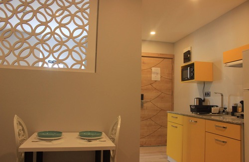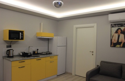 Each apartment provides an LED TV with satellite channels, plus a kitchenette with a refrigerator, a stovetop, and a microwave. Guests can appreciate conveniences like a sofa bed and a dining area, and other amenities include free WiFi and a balcony. Weekly housekeeping is available.