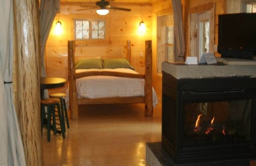 Equally as lovely and cozy, is our lower level suite. It sleeps up to 6 people with 2 queen sized beds, each in separate sleeping areas that are curtained off for privacy. In addition, a comfortable queen sleeper sofa / air mattress provides added sleeping accommodations. A full kitchen and bath, along with a gorgeous 3-sided gas fireplace brings this unit to cozy comfort.