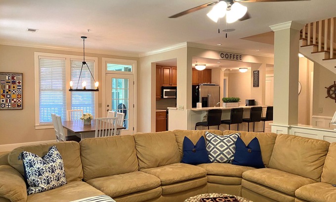2,000 sqft of living space with high speed300MB internet service, Cable TV in living room and Master bedroom. Smart TV with Netflix guest rooms, gas fireplace, full kitchen, board games, extra blanket and marina access. The home is Handicap accessible, including an elevator.