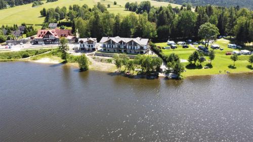16 miles from Castle Český Krumlov in Frymburk, Rezidence KUPEC features accommodations with access to wellness packages, fitness room, and steam room. This beachfront property offers access to a balcony, free private parking, and free Wifi. Guests can use the hot tub and spa facilities, or enjoy garden views. The apartment provides guests with a terrace, lake views, a seating area, cable flat-screen TV, a fully equipped kitchen with a dishwasher and an oven, and a private bathroom with shower and a hair dryer. A microwave, a toaster, and fridge are also offered, as well as a coffee machine and a kettle. At the apartment complex, every unit comes with bed linen and towels. A selection of options including fresh pastries, fruit, and juice are available for the buffet breakfast. There is an on-site coffee shop. Guests at Rezidence KUPEC will be able to enjoy activities in and around Frymburk, like cycling, hiking, and walking tours. A private beach area, ski-to-door access, and ski storage space are all available at the accommodation, and guests can go skiing in the surrounding area. Přemysl Otakar II Square is 30 miles from Rezidence KUPEC, while Lipno Dam is 5.2 miles from the property. Ceske Budejovice Airport is 30 miles away.