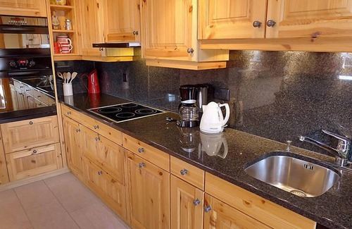 "Rhodonite 24", 4-room apartment 98 m2 on 2nd floor, south-west facing position. Very comfortable and tasteful furnishings: large living/dining room with open-hearth fireplace and TV (flat screen), DVD. Exit to the balcony, south facing position and west facing position. 1 room with 2 beds. 1 room with 2 beds. Exit to the balcony, east facing position. 1 double bedroom with 1 double bed (160 cm), bath/shower/WC and double hand-basin. Open kitchen (4 hot plates, oven, dishwasher, toaster, kettle, microwave, grill, electric coffee machine, Capsules for coffee machine (Nespresso) extra, raclette grill, fondue Set (cheese)). Exit to the balcony. Shower/WC. Balcony 5 m2, east facing position, balcony 20 m2, south facing position and west facing position. Balcony furniture. Very beautiful view of the mountains. Facilities: washing machine, dryer, iron, hair dryer. Internet (WiFi, free). IPod docking station. Garage.