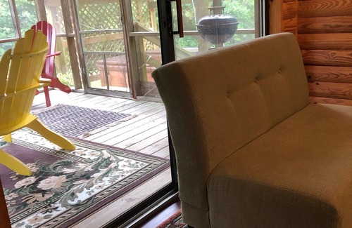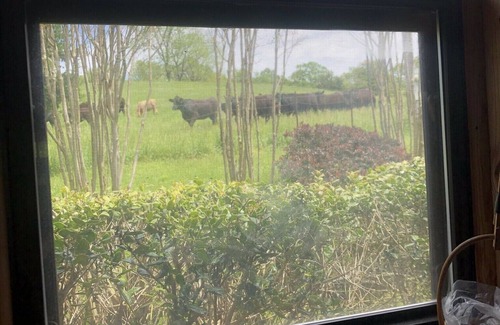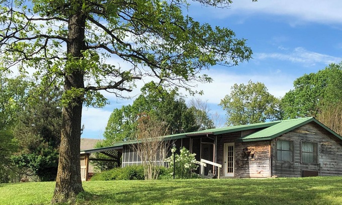 Deep in the Arkansas Ozarks, nestled in rolling hills, is working ranch. Only 12 miles southeast of Huntsville, 6 miles west of Kingston, we are located at the crossroads of the Ozarks. Eureka Springs, Fayetteville, and Springdale are about 45 minutes away. The scenic Buffalo River is just 22 miles over mountain roads. On the screened in porch of this lovely cabin, you can relax and breathe the fresh air. For the more energetic, miles of hiking and riding trails, also accessible by mountain bike, lie right outside the door. The cabin can accommodate up to four guest with one bedrooms and one sleeper sofa. This cabin feature a full kitchen, Living area, bedroom with a king size bed and large bathroom. If you have special needs this cabin is fully handicap accessible. This is a very private setting with dark night skies, and a large screened in porch which is overlooking one of the ponds on the property. If you are looking for a relaxing, beautiful, quite place to get away from it all this is it. Come enjoy our property we would love to have you! Hot tub not available.