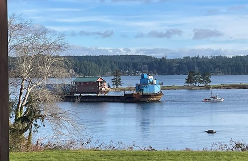 Take it easy overlooking our magnificent seascape setting. Great potential for spectacular pink, yellow, or indigo sunrises. With public beach access you can do a low tide walk along the sand bars. Or simply enjoy the high bank panoramic view of the Spit and Estuary from the covered deck. Comfy outdoor seating has a great vantage to ocean goings on like eagles, geese, boats and float planes. We provide all you'll need for your stay to be comfortable. Near to Elk Falls, the Campbell River, Ripple Rock hikes and 40 min from Mt. Washington.