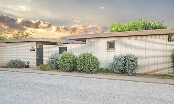 Located right next door to Midland Grand Living enjoy this 4 bedroom 2 bath home with 6 beds or rent both for larger groups. Located just off the loop you will have access to all major restaurants and shopping while in the safety of one of Midland's best neighborhoods. There is plenty of parking in the front and two patios to enjoy one in the inter front and a backyard with lighted pergola and huge trees. Feel free to dine inside or out there is plenty of seating for all. The kitchen is well equipped to feed everyone and there is a charcoal BBQ in the backyard. The bedrooms are situated in the corners to provide privacy while everyone is under the same roof with smart TVS in all rooms and on the patio Plan your trip now whether for pleasure or business this house has plenty of room and parking to accommodate all.