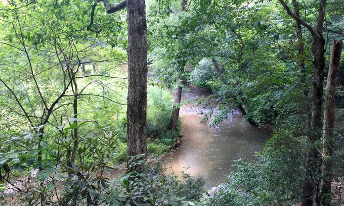 Forest Cabins of Ellijay is set on 6 acres of pristine old-growth forest of hardwoods and huge white pines. The acreage is bordered by about 900 feet of Clear Creek. Clear Creek is about 20 feet wide . And you have a lovely view of the rushing trout stream. Sit on the covered porch and listen to the pileated woodpeckers, babbling stream, crickets, frogs and lake loons. Most visitors will spot deer taking advantage of the creek or a blue heron fishing for supper.