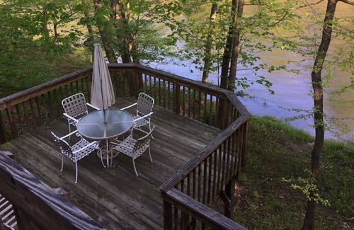 Rent this secluded single-family waterfront house in the woods on the sparkling Cacapon River, 15 miles from Berkeley Springs, West Virginia.