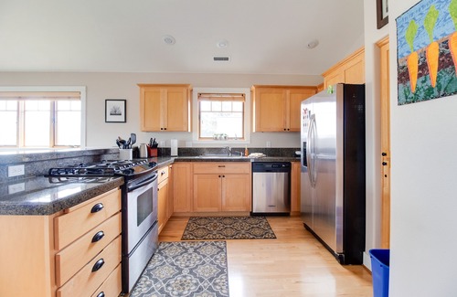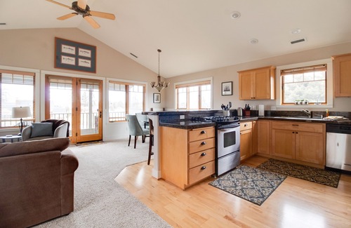 This condo features a fully equipped kitchen, complete w/ dishwasher, microwave, toaster, coffee maker, everything you'll need to cook to your heart's desire, all linens provided, one car garage for your use. Light and bright with lots of windows, vaulted ceilings and a cozy gas fireplace in the living room make this condo inviting. This is a second-level unit w/ 2 bdrm (1 queen, 1 queen), 2 baths, one with tub shower and one with shower only. There is a queen pullout sofa bed available also which will accommodate 2 more (max of 6 people, children count towards the 6). TV w/Roku, DVD, AC, washer and dryer for your convenience, and garage access available to guests.