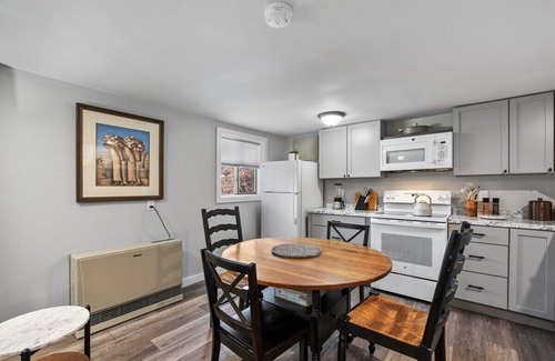 Fully applianced kitchen with dishwasher & built in microwave, blender, toaster, coffee pot- all the cooking needs you can image are setup like a home! Bed, bath linens are provided plus a washable shower liner. Enjoy the ease of washer dryer in the cottage. All new windows and heat this unit is warm and toasty for winter & will be cool with window ac's in summer months.