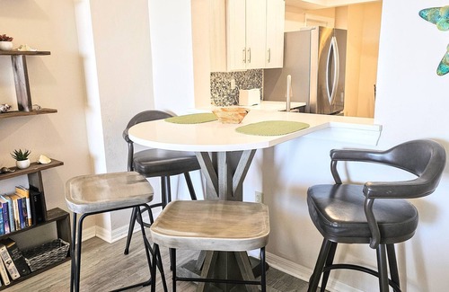 Prepare meals in the brand new fully stocked kitchen, equipped with all the essentials, even a wine fridge! Enjoy the views from the dining table for up to six. The condo also provides a washer and dryer, beach chairs, and beach towels, ensuring that you have everything you need for an unforgettable beach getaway.