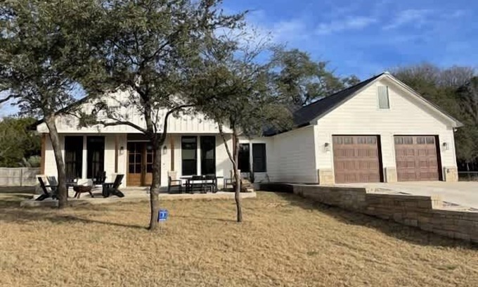 The Craddock is a spacious retreat on a picturesque 9-acre property along the Blanco River, perfect for families or groups, accommodating up to 8 guests. It features a master suite with a king-size bed, two additional bedrooms with queen beds and a twin trundle, plus a cozy living room with a sleeper sofa. The well-equipped kitchen, laundry facilities, and outdoor patio with a grill and dining area ensure a comfortable stay. Enjoy private river access and stunning views of the Texas Hill Country.
