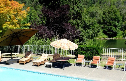 Gated home with private lower level consisting of 1800 sq ft, on the rogue river... Private entry overlooking the pool and the river. 100% total remodel just completed on entire private area. 2 bed, 2 bath, designer furniture, 1600ct Egyption linens, fully stocked kitchen, 3 large flat screen TV's, cable, Wi Fi, Internet, SAUNA, jetted bathtub, walk in shower with bench, etc. Home sits on 2 + acres which is gated and has plenty of parking for cars, boats, RV's etc. Security cameras on parking area for you peace of mind. Private drive to your entrance. 44,000 gallon pool out your front door. World class fishing in your back yard. 5 minutes from downtown Grants Pass, and wineries in which ever way you drive. 150 in our area to be exact! Hellgate Jet boats are a 5 minute drive, 20 minutes to the longest zip line in Southern Oregon, 1 1/2 hours from the Oregon coast, and 1 1/2 hours from Crater Lake. You can raft from the back yard or fish! I can help with any reservations or activities you might be interested in. Ideal for families, couples, etc. Everything is here! No need to leave the property if you just want to relax and unwind. There is nothing better than watching the kids swim, relaxing by the pool with a drink, and being able to listen to the river at the same time.