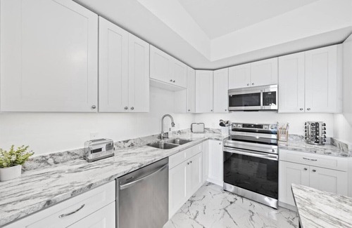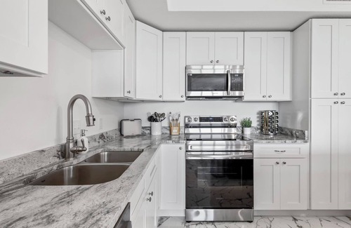 Gather around the kitchen island and prepare gourmet meals in the expansive, fully equipped kitchen adorned with top-of-the-line appliances and sleek finishes, then dine together around the spacious dining room table to enjoy your culinary creations in the company of your loved ones. After dinner, unwind in the inviting living room, equipped with a 65-inch TV and ample seating for everyone to relax and entertain.