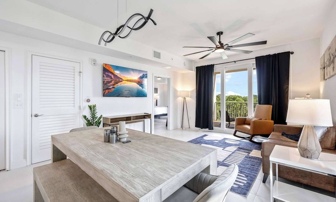 Prepare gourmet meals in the expansive, fully equipped kitchen adorned with top-of-the-line appliances and sleek finishes, then gather around the spacious dining room table to savor your culinary creations in the company of your loved ones. After dinner, unwind in the inviting living room, equipped with a 65-inch TV and ample seating for everyone to relax and entertain.