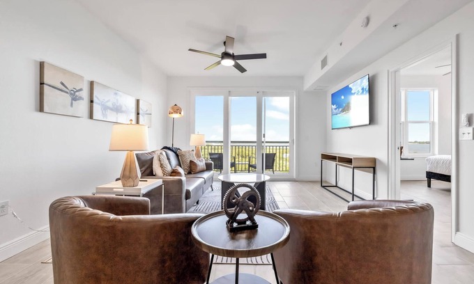 Find yourself in the ultimate luxury at our newly built 2-bedroom, 2-bathroom condo perched on the 7th floor, offering unrivaled vistas of Port Canaveral, and the tranquil Banana River. Have a front row seat to the awe inspiring rocket launches of the Space Coast. This immaculate residence boasts 9-foot ceilings, cutting-edge appliances, Nest thermostat, exquisite granite countertops, elegant cabinetry, and sumptuous flooring throughout, ensuring an amazing retreat. Our commitment to excellence is evident in every detail, from the meticulously designed condo units to the entire building's high-end finishings and fixtures, delivering a sense of lavishness while maintaining the spaciousness of modern interior design.