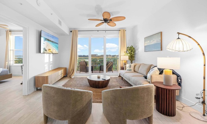 Discover luxury living at River Fly In. This is a listing for "The Merritt", a brand-new 2-bedroom, 2-bathroom condo overlooking the Banana River and Merritt Island Airport. Surrounded by a serene nature sanctuary, this private oasis blends modern design, high-end amenities, and a peaceful retreat from the everyday.