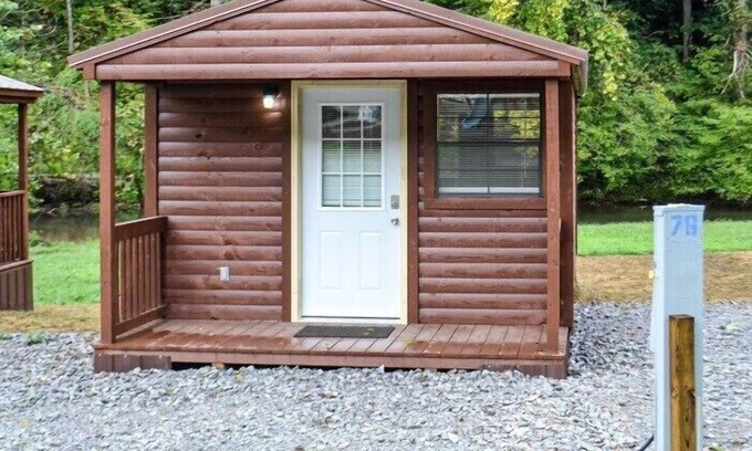 These Cabins are creek front and located in the beautiful East Tennessee area at River Forge RV Park and Campground. The cabins are 1 room with 2 full size beds. Cabins are climate controlled with heating and air. The bathhouse is located right behind the cabins, and they include a separate men's and women's shower, bathroom, and vanities. (THERE ARE NO BATHROOMS IN THESE CABINS!) The laundry mat is also located in the bathhouses facing the cabins. The cabins have a dorm refrigerator and microwave. Also available on the property is a playground, community firepit, and pavilions. Come to our country market located at the entrance of the property for all your basic commissary needs. In addition, we serve breakfast and lunch at the country market!!! Enjoy a scenic hike along the creek or simply relax on your own private back porch.