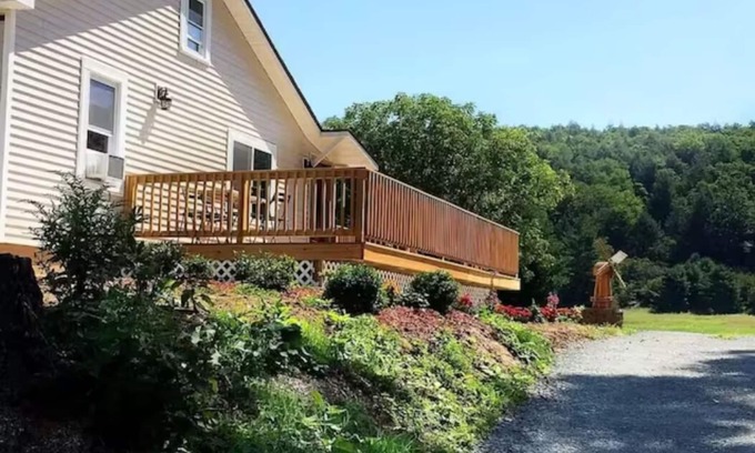 Enjoy our home right on the Neversink River. Fantastic views of the River can be seen from every room of the house. An open floor plan allows for optimum natural light. Enjoy meals on the large dining room table or eat outdoors in the XL Screened-in gazebo. The kitchen is fully stocked with all you could need, or cook in the Grill House complete with propane grill, wood/charcoal grill, and a wood-fired wok. Private access to the River right across the street is a phenomenal fly-fishing spot, or drop in our kayak and float down stream. The property is full of color during summer months with gardens surrounding the home. only 5 minutes from Holiday Ski mountain and 10 minutes from Resorts World Casino and Kartrite Indoor Water park.