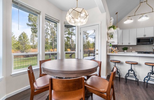 Come stay at our magical RIVER FRONT 4 bedroom cabin with all new upgrades and stylish decor. Just 25 min to Mt. Bachelor, 20 min to Downtown Bend, 7 min to Sunriver Resort and all that Bend has to offer. Family friendly, work space area, and home gym on site. Rec room, game room and 2.5 bathrooms give any group plenty of space to enjoy the river or the mountains. Quiet in the evenings and a perfect place for a retreat.