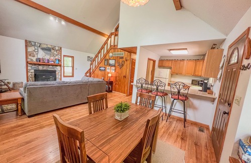 CABIN HIGHLIGHTS : 2 Smart TVs (one located inside living room, second located inside guest bedroom), board games, washer/dryer, fire pit (starter wood provided), furnished deck w/ outdoor dining